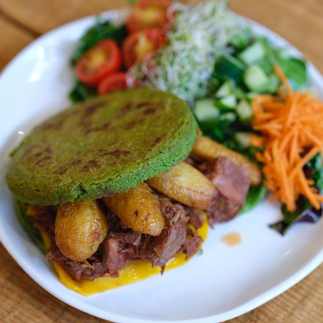What I really love about this place is that even though the food is outrageously good, its still all pretty healthy options. Some of my other favorites here arte the arepa pelúa, chamo bowl, and taco salad.